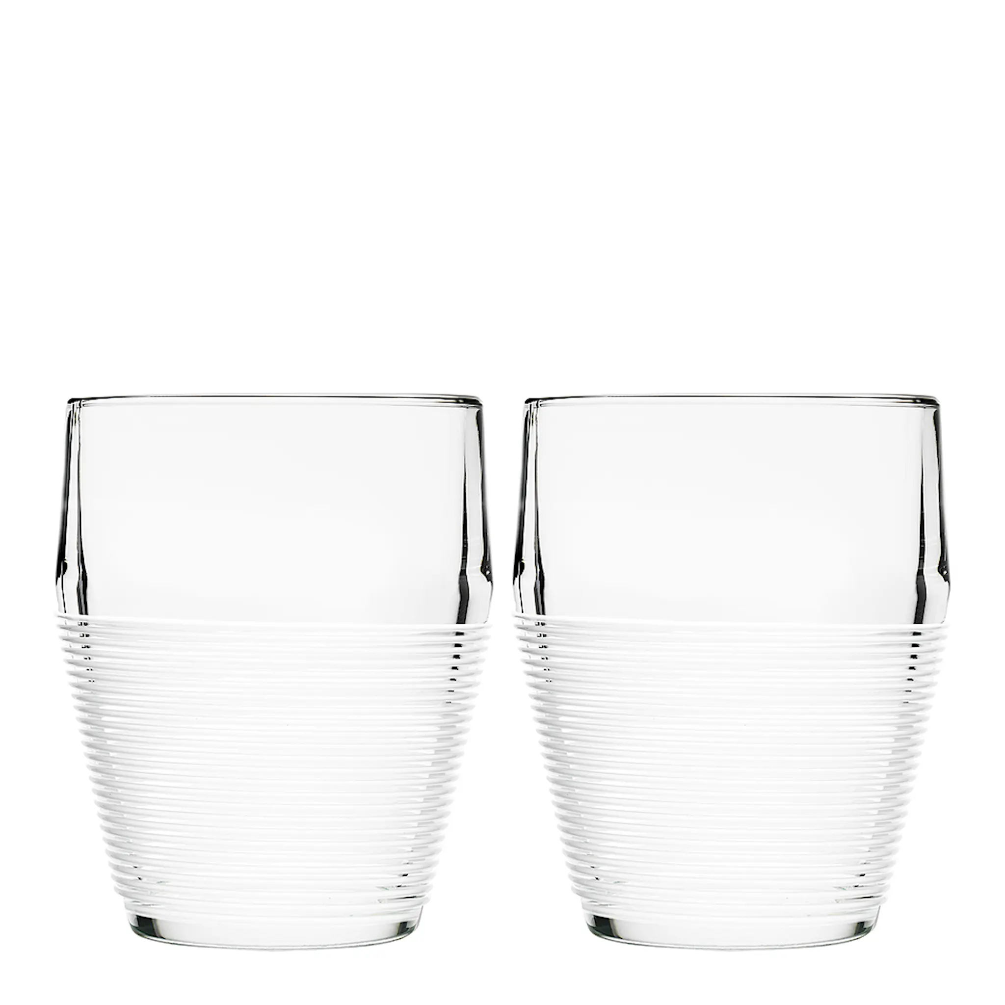 Timo termoglas är tillverkade i härdat värmetåligt glas och har en silikonring som förhindrar att du bränner dig. De här glasen passar lika bra till varma som kalla drycket, till exempel kaffe, glögg eller iste. Formgivna av Timo Sarpaneva för Design House Stockholm.