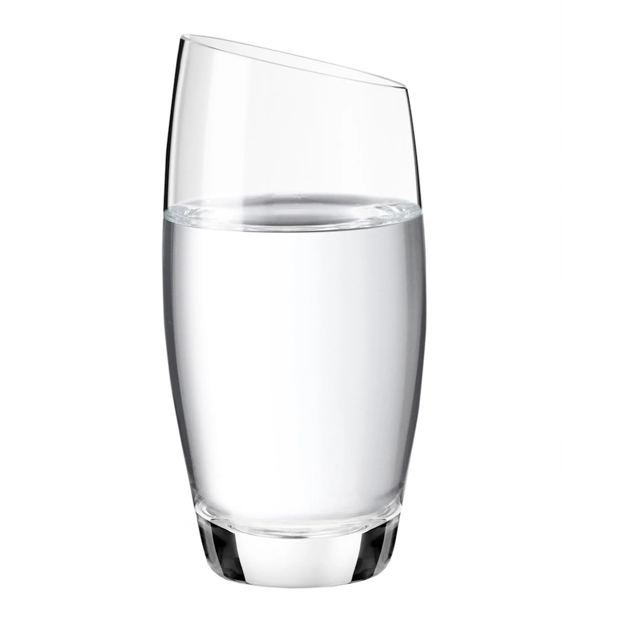 Glas från Eva Solo. Med tunn, elegant drickkant och i en form gör att man kan dricka från alla sidor. Den sneda kanten är spännande och intressant för ögat. Mycket passande som vattenglas tillsammans med vinglaset.
