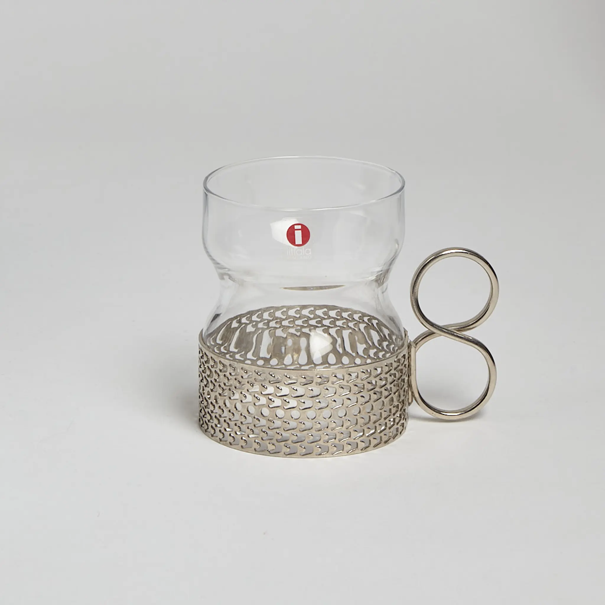 8 st teglas med metall handtag ur serien ”Tsaikka” formgivna av Timo Sarpaneva för Iittala.