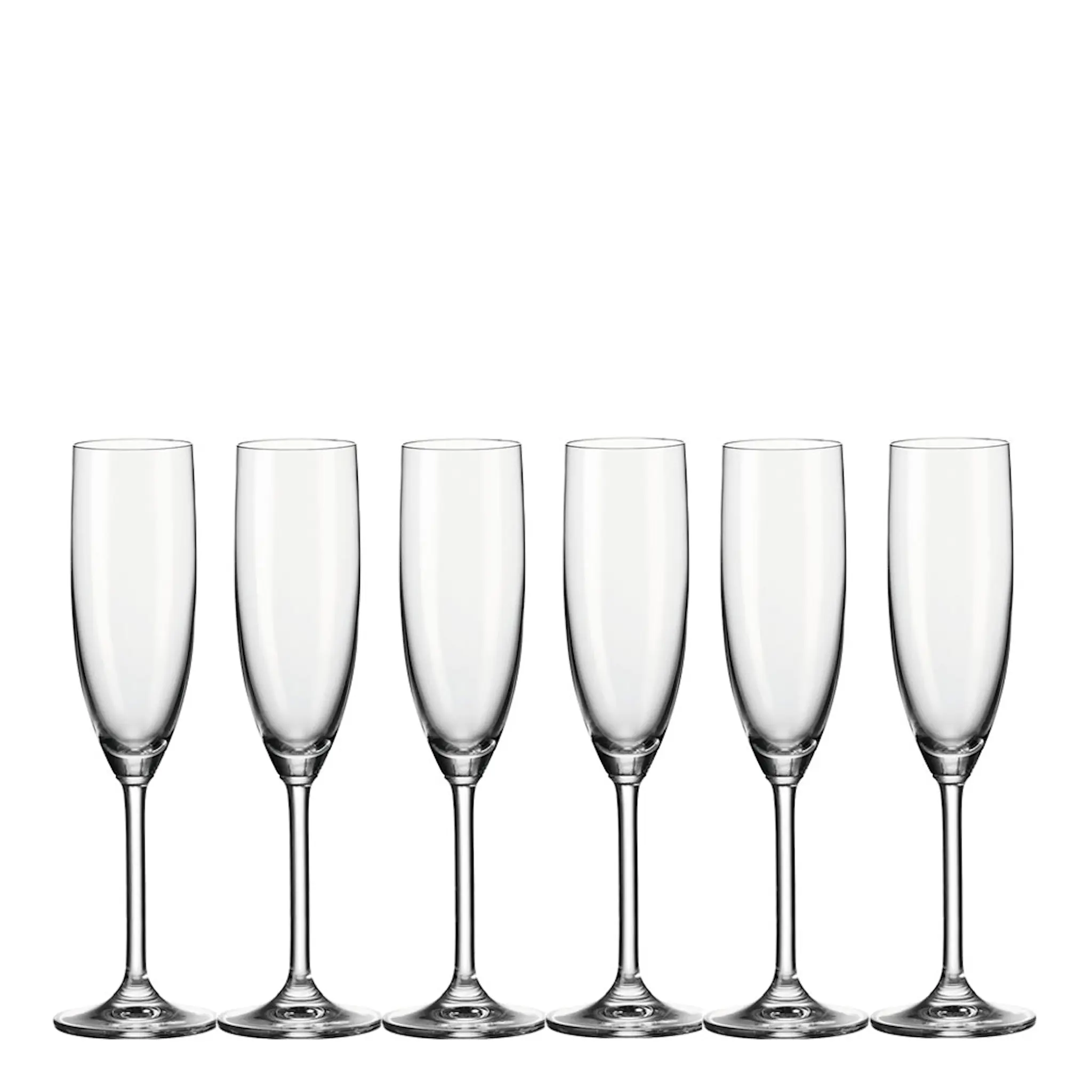 Champagneglas i serien Daily, i 6-pack, från Leonardo. Daily är tillverkad i stöttåligt kristallglas (Teqton). Daily champagneglas från Leonardo är ett glas utöver det vanliga. Daily förgyller dukningen och blir ett vackert inslag i ditt vitrinskåp mellan middagarna. Leonardo har i över 100 år skapat unika hantverk i glas som berättar om mänsklig gemenskap, och om de små och stora stunderna i livet tillsammans.
