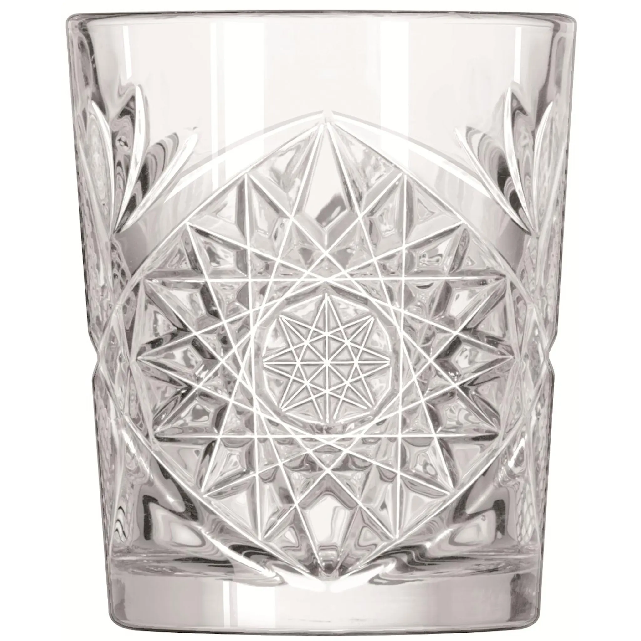 Hobstar double old fashioned glas passar utmärkt till whisky eller som vanligt vattenglas. Tillverkat i härdat glas med en viss tyngd som gör att de tål att användas. Glaset har ett mönster som gör att vilken drink du än har i glaset reflekteras snyggt.