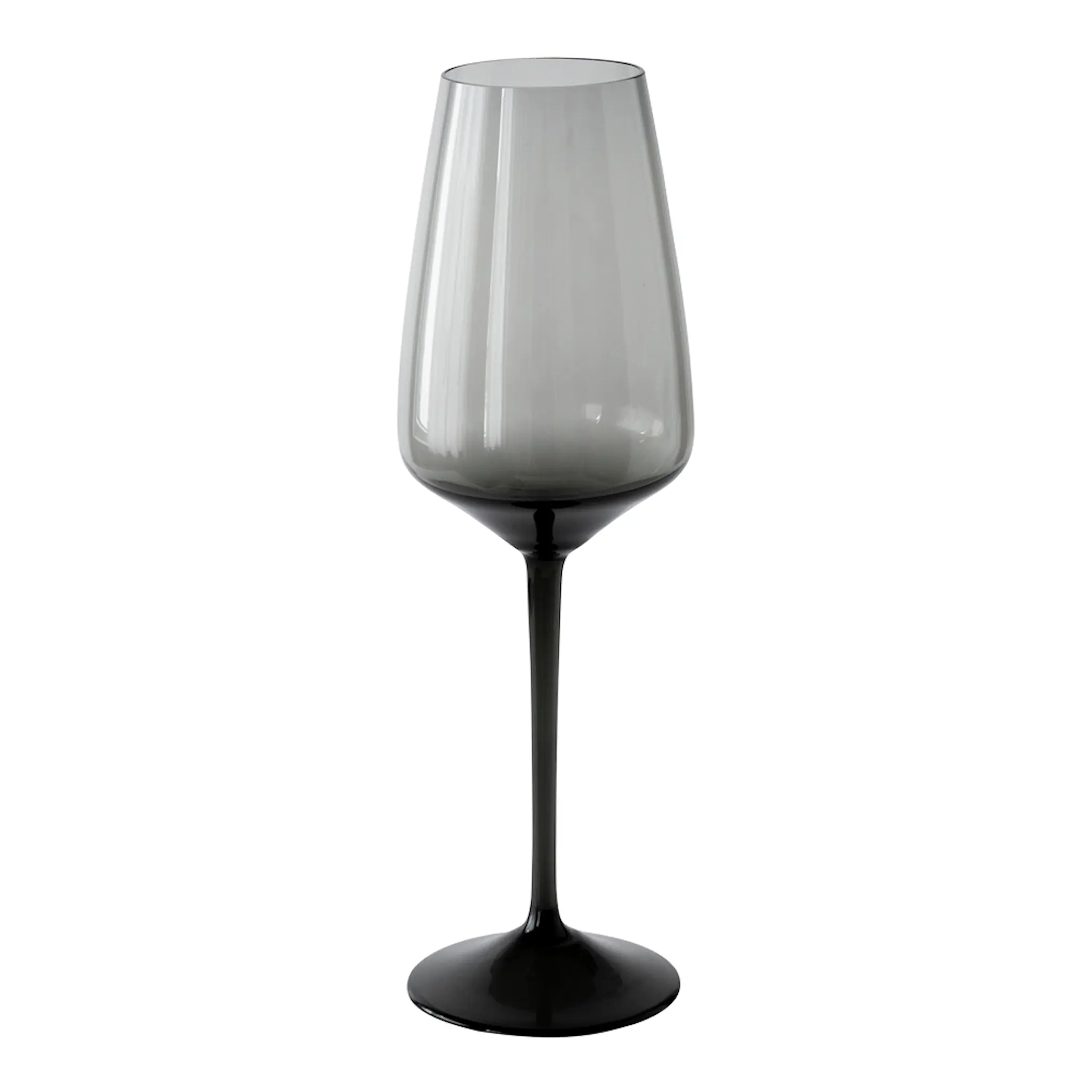 Noir är en serie munblåsta glas i genomfärgat glas med ett sobert uttryck. De rökfärgade champagneglasen ger ett effektfullt intryck och ger lite extra flärd när du ska avnjuta de ljuva bubblorna.